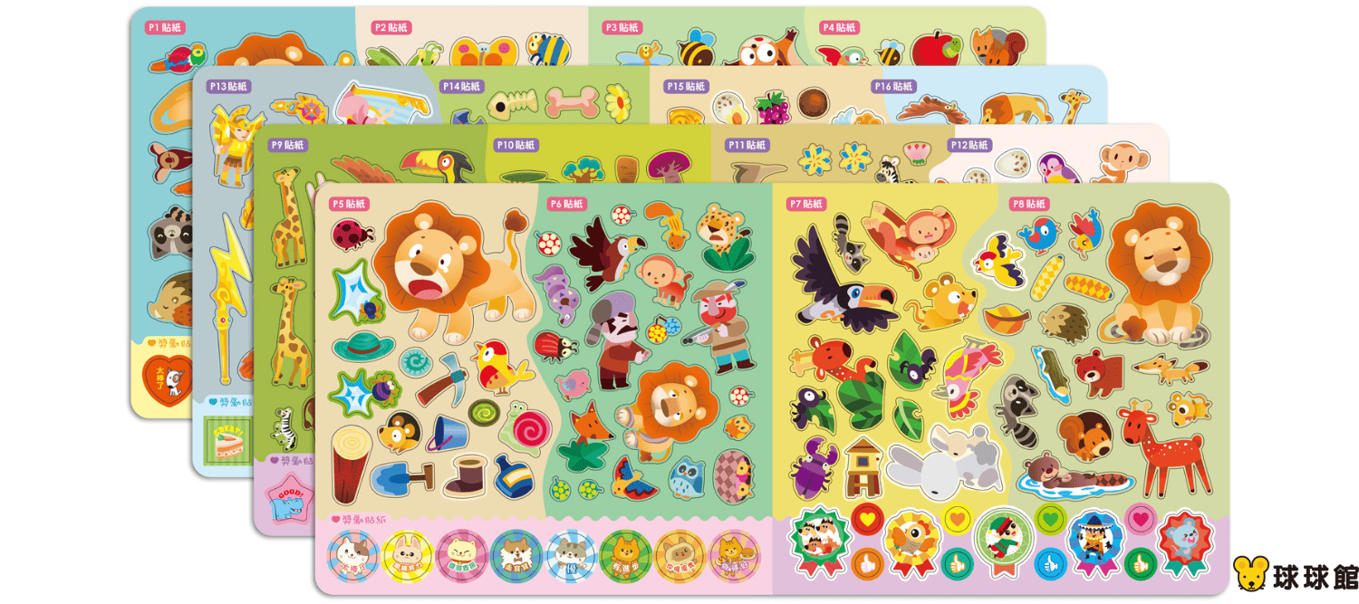 書中設計了多個生動的跨頁場景,並附有330張色彩鮮豔的動物、植物與人物貼紙。孩子必須根據故事發展,找出對應的貼紙完成畫面,不僅能加深對故事情節的理解,更能在無形中培養專注力與邏輯思考。書末溫馨的「小故事大啟示」更是絕佳的品格教材,讓學習變得有趣又深刻!